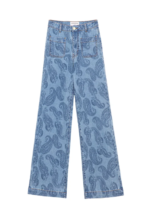 Le jean Atlanty offre une coupe flare élégante et une taille haute flatteuse. Sa toile en denim avec un imprimé en cachemire apporte une touche de modernité, tandis que sa ceinture à passants et ses poches plaquées allient style et praticité. Associez-le avec le top Talia.