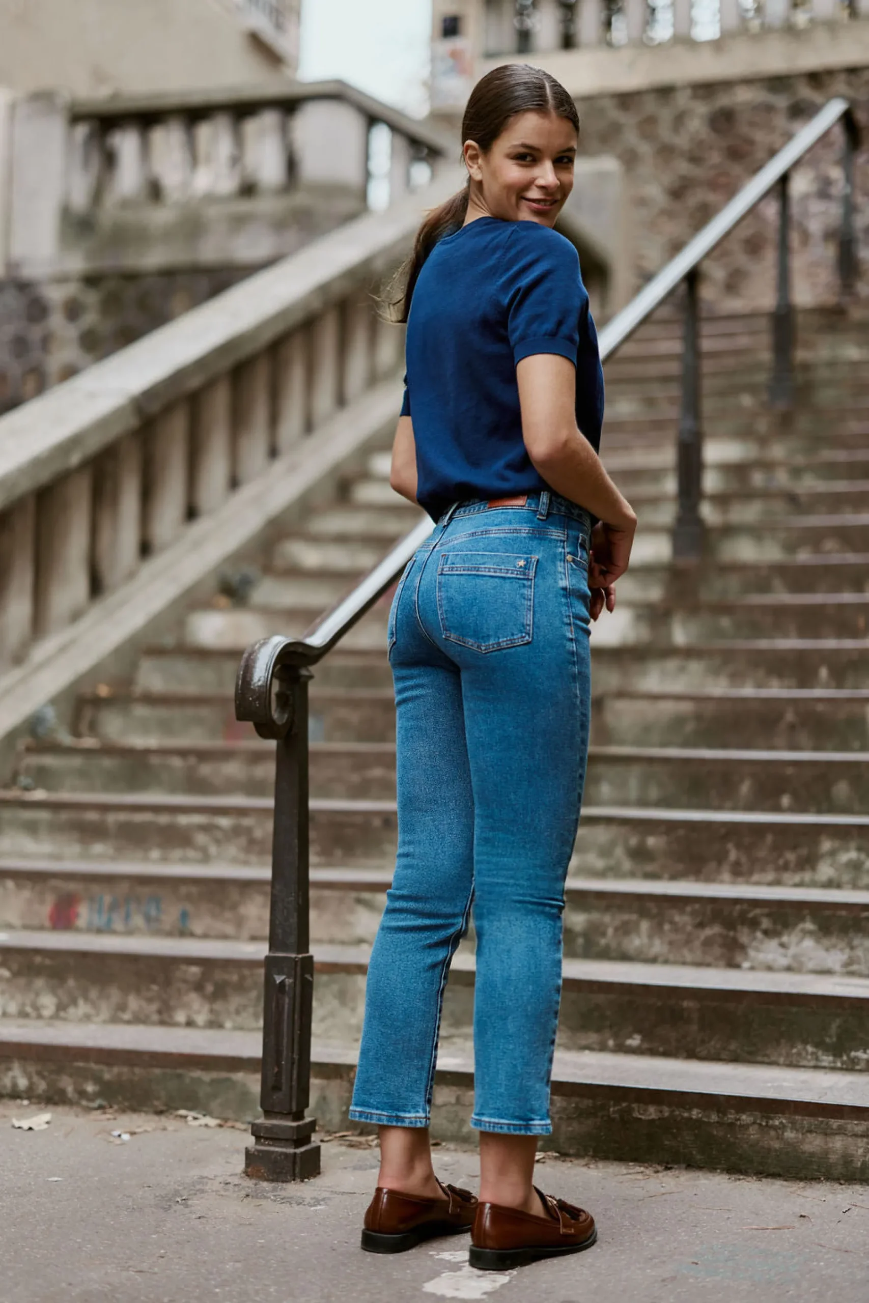 Ce jean de coupe droite 7/8ème est un parfait allié pour le quotidien. Avec sa taille haute et ses détails soignés, il s’adapte à toutes les tenues, des looks décontractés aux ensembles plus habillés. Un indispensable pour un dressing tendance.
